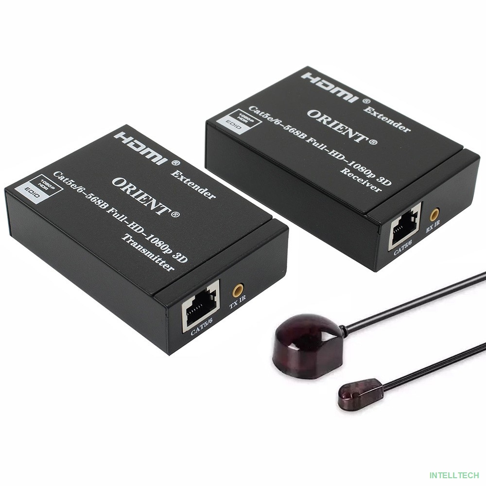 rusName: [переходник] ORIENT VE045IR, HDMI extender (Tx+Rx), активный удлинитель до 60 м по витой паре Cat5e/6, HDMI 1.4а, 1080p@60Hz/3D, HDCP, доп. вых. HDMI, передача ИК сиг. упр.( IR-TX/Rx в компл), БП 5В/1А (31323)