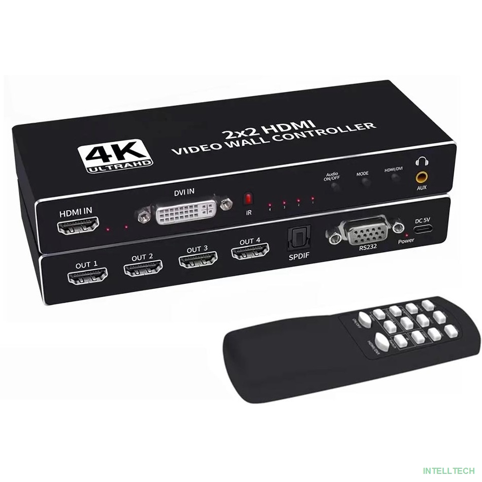 rusName: [переходник] ORIENT HSP2X2WN, контроллер видеостены 2x2, 8 режимов отображения, UHD 4K/30Гц (3840x2160), 1080p/60Гц, HDMI 1.4, HDCP1.2, HDMI 1 вход/4 выхода, DVI вход, RS232(DB9F) (33206)
