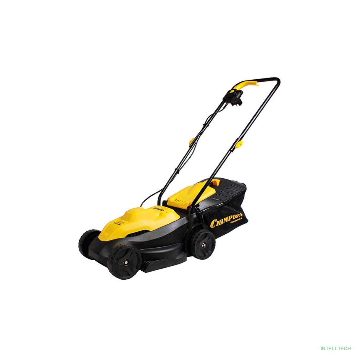 rusName: [Газонокосилки и аэраторы] CHAMPION Газонокосилка эл. EM3411 { 1 кВт пласт+ткань 30л шир.320мм выс.25-65мм, 6,4кг }