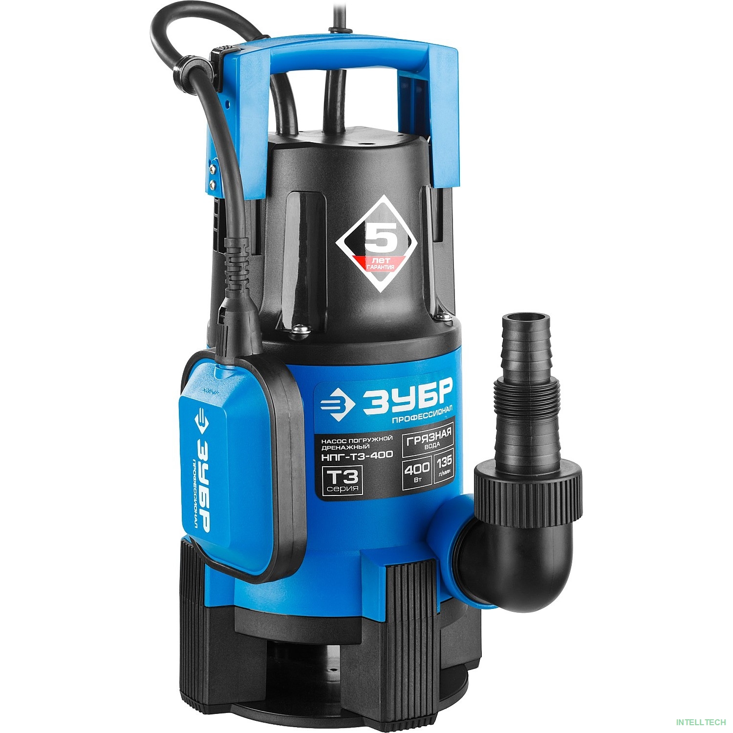 rusName: [Бензоинструмент] ЗУБР Профессионал [НПГ-Т3-400] Насос Т3 погружной { дренаж. для грязной воды (d частиц до 35мм), 400Вт, пропуск способн 135л/мин, напор 5м, провод 10м }