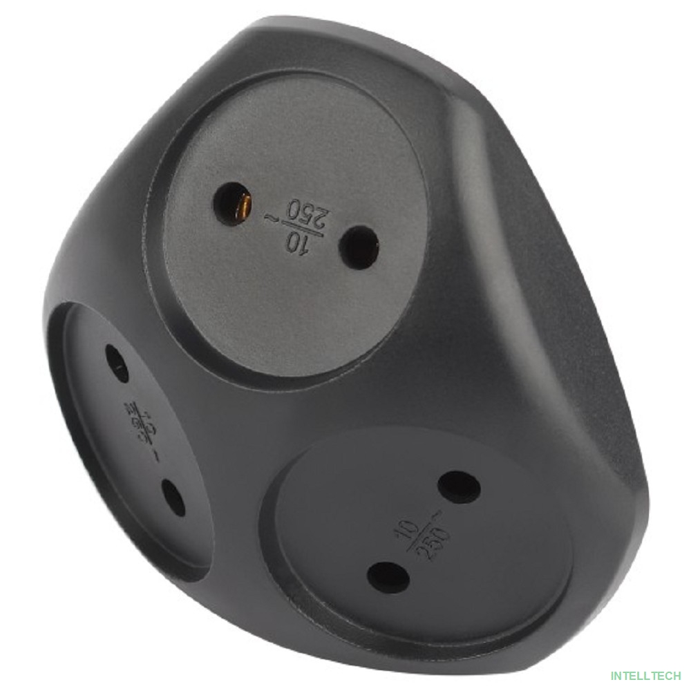 rusName: [ЭРА Удлинители бытовые, Сетевые фильтры] ЭРА Б0059721 Разветвитель электрический SPx-3-B на 3 розетки без заземления 10А черный