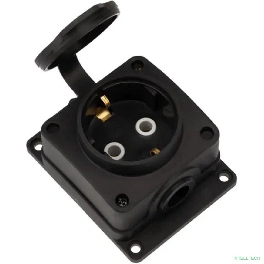 rusName: [Smartbuy Вилки, Разъемы силовые, Колодки] Rexant (111-221) Розетка (колодка) влагозащищенная с крышкой 1 гнездо COMPACT, с/3, 16А, IP54, каучук, черная