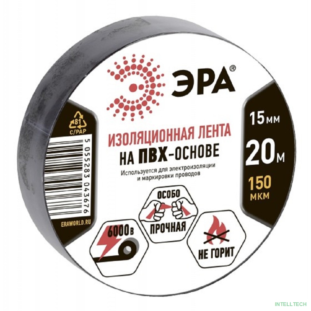 rusName: [ЭРА, Rexant Изолента] ЭРА C0036552 ПВХ-изолента 15ммх20м черная [043676]