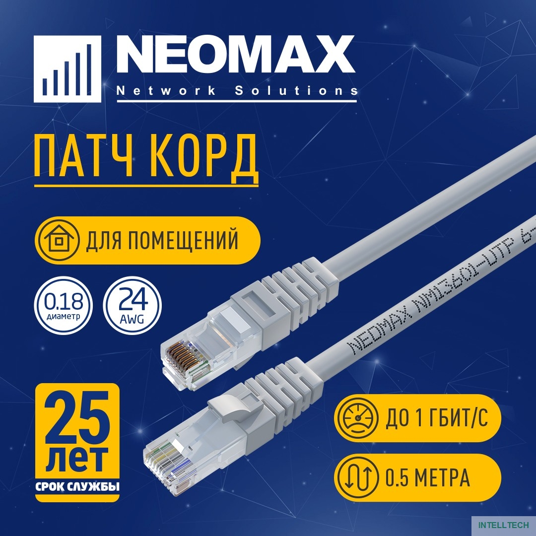 название: NEOMAX (NM13601-005) Шнур коммут. UTP 0.5 м, cat.6, серый, многожильный