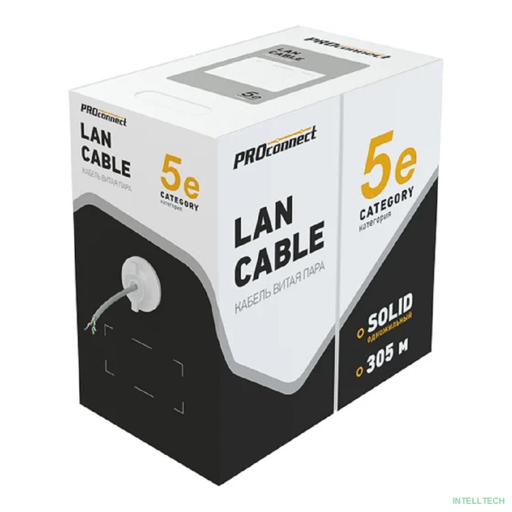 rusName: [Неэкранированная витая пара (бухты)] PROconnect (01-0052) Кабель витая пара U/UTP, CAT 5e, PVC, 4PR, 24AWG, INDOOR, SOLID, серый, 305м