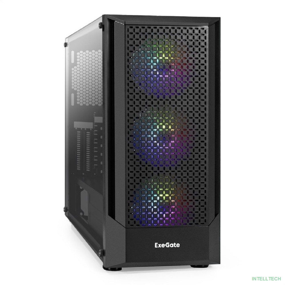 rusName: [Корпуса] Exegate EX295765RUS Корпус Miditower ExeGate EVO-8227 (ATX, без БП, 2*USB+1*USB3.0+HD Audio, черный, 3 вент. с RGB подсветкой, боковая панель - закаленное стекло)