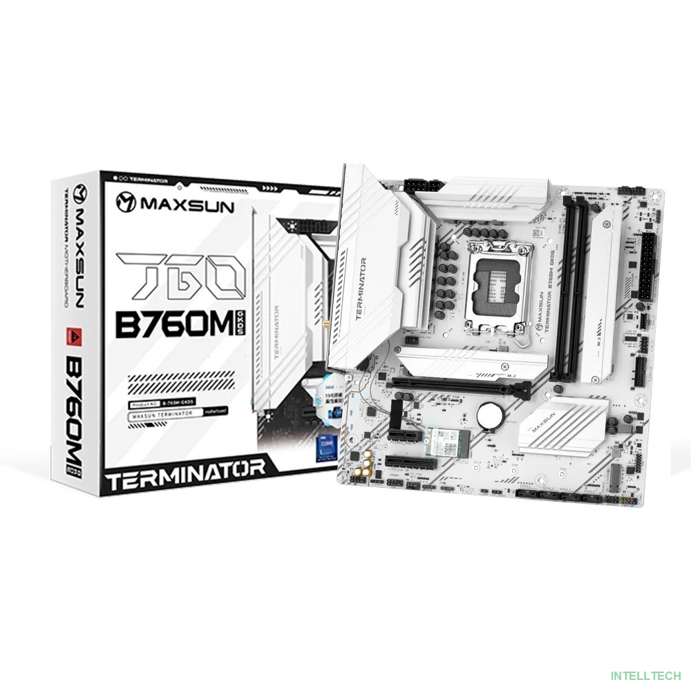 rusName: [Материнская плата] MAXSUN MS-Terminator B760M GKD5 ICE (Socket 1700, mATX, 2*DDR5(96Gb), DP/HDMI, 3*SATA3, 4*M.2, 1*PCIEx16/1*PCIEx4, 6*USB2.0, 2*USB 3.2, LAN 1*2.5G, ARGB, white, RTL)