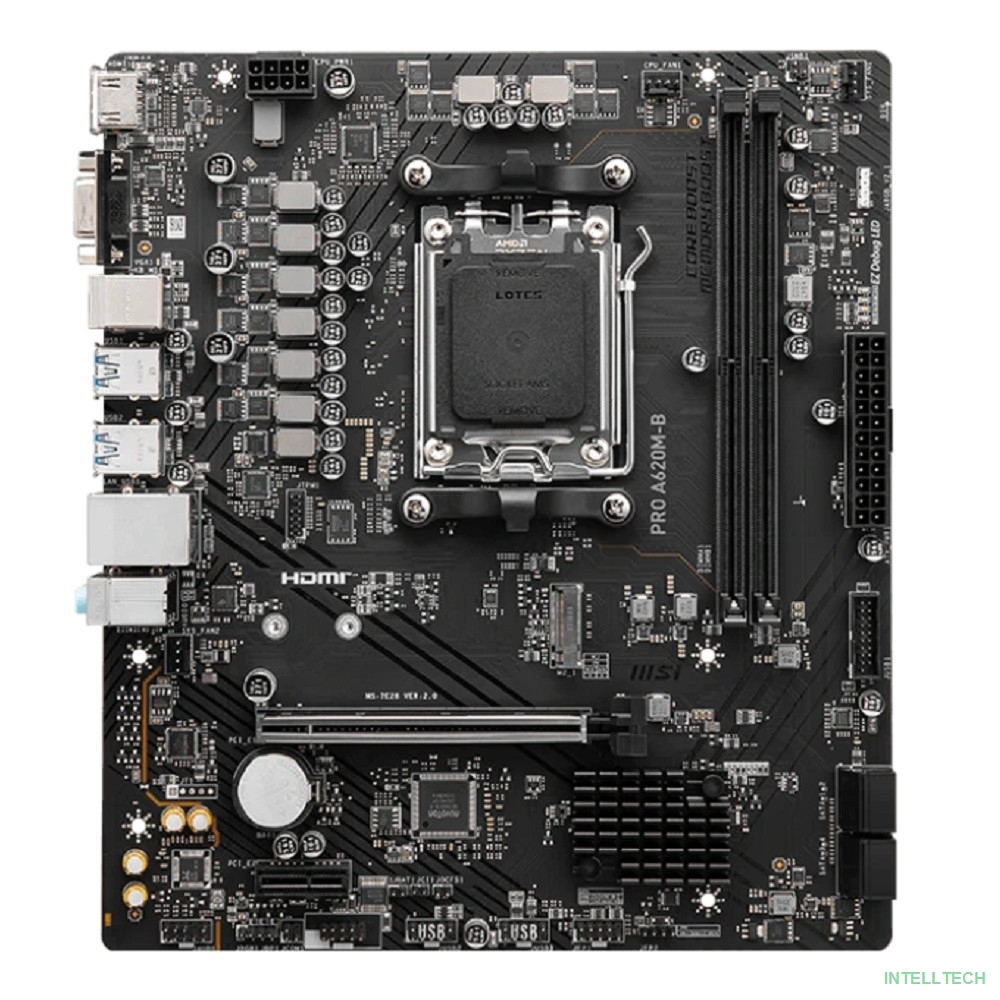 rusName: [Материнская плата] MSI PRO A620M-B A620, AM5, 2*DDR5, 1*PCIEx16, 1*PCIEx1, 1*M.2, 6*USB3.2Gen1, 6*USB2.0, 4*SATA3.0, 2.5G, VGA, HDMI, M-ATX, RTL