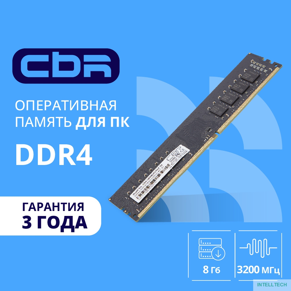 название: CBR DDR4 DIMM (UDIMM) 8GB CD4-US08G32M22-01 PC4-25600, 3200MHz, CL22, 1.2V