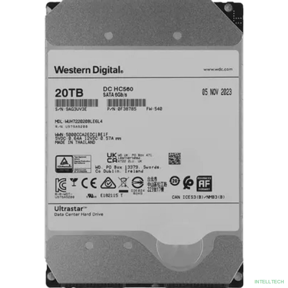 rusName: [Жесткий диск] 20Tb WD Ultrastar DC HC560 {SATA 6Gb/s, 7200 rpm, 512mb buffer, 3.5"} [0F38785/WUH722020BLE6L4] (38643)