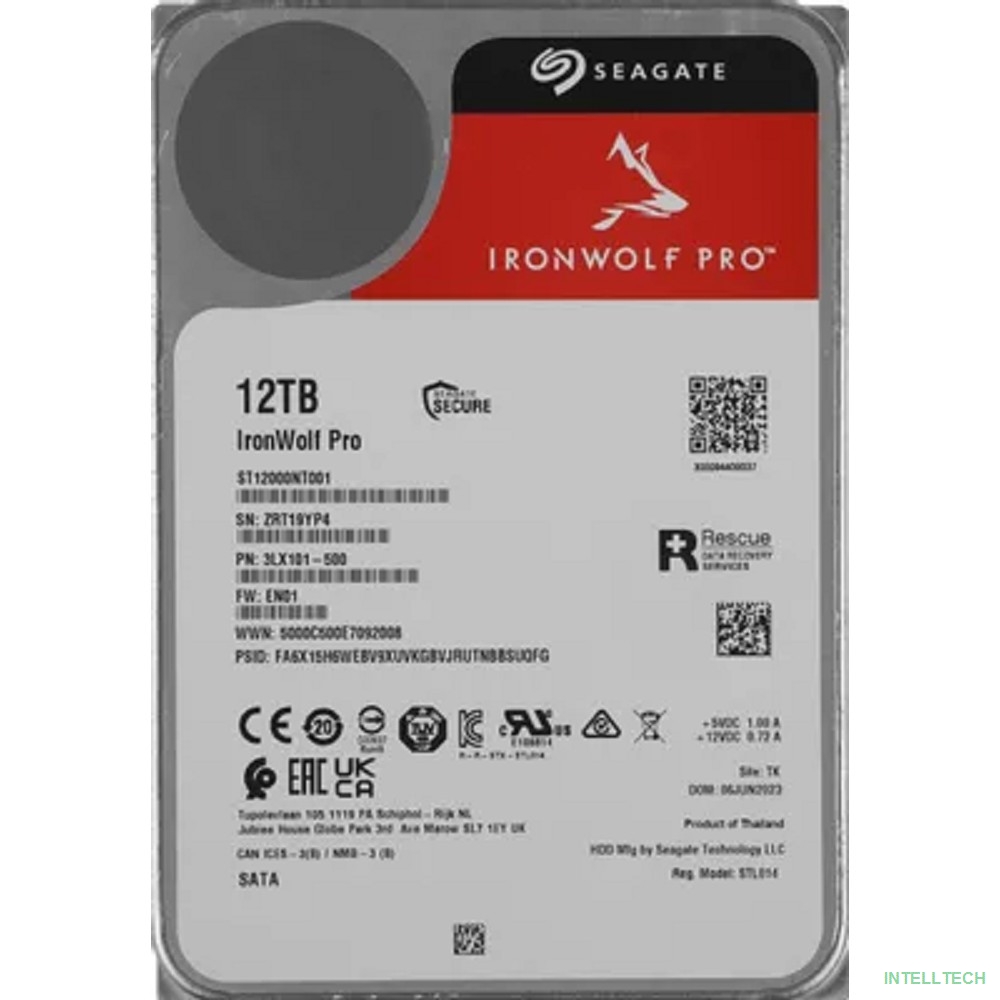rusName: [Жесткий диск] 12TB Seagate Ironwolf Pro (ST12000NT001) {SATA 6.0Gb/s, 7200 rpm, 256mb buffer, 3.5", для NAS}
