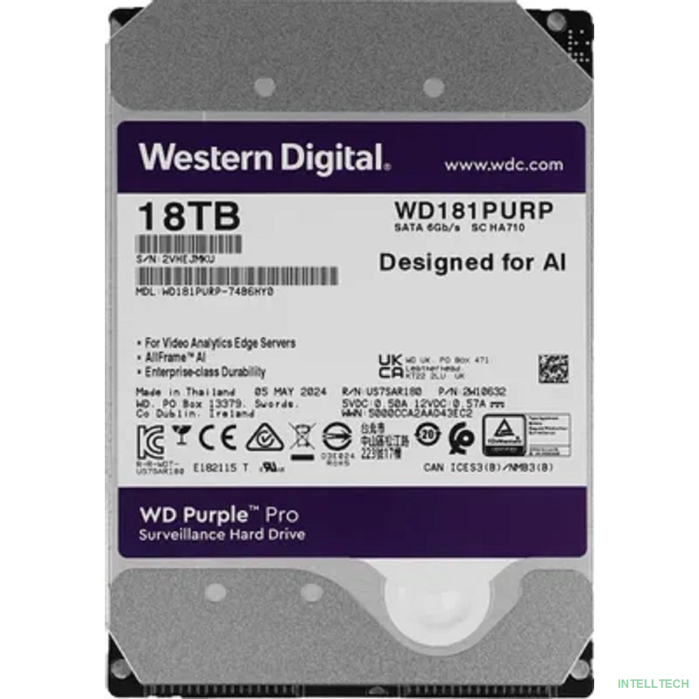 rusName: [Жесткий диск] 18TB WD Purple Pro (WD181PURP) {Serial ATA III, 7200- rpm, 512Mb, 3.5"}