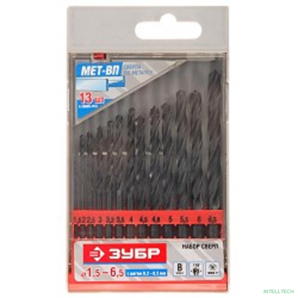 название: Набор ЗУБР "ТЕХНИК": Свёрла по металлу парооксидированных, быстрорежущая сталь, 1,5-6,5мм, 13шт [4-29605-H13/29605-H13]