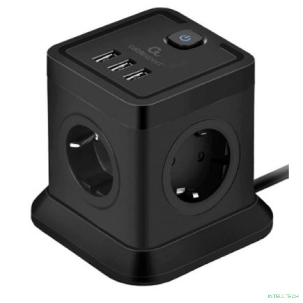 название: Cablexpert Сетевой фильтр Tower TWR-4-U3-B-2 (4р, 10А, 3xUSB, 3.1А, 2м, ур.защиты 2+) черный, коробка
