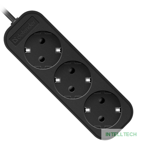 Наименование: Удлинитель с заземлением Defender M350 5.0 м, 3 розетки, черный