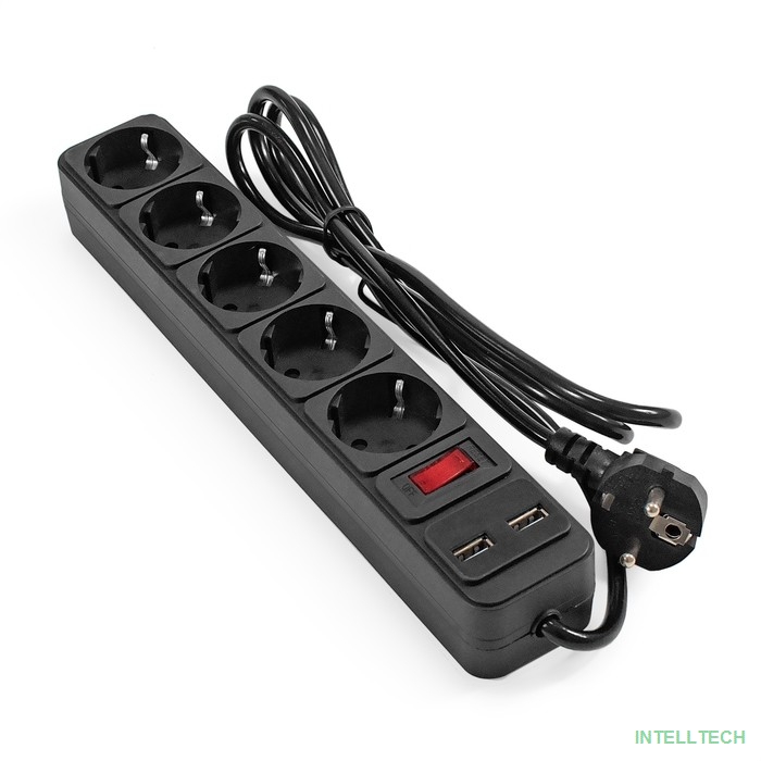 название: Exegate EX295490RUS Сетевой фильтр-удлинитель с USB зарядкой ExeGate SP-5-USB-1.8B (5 евророзеток с заземлением, 2 USB-A 2A, 1.8м, защита от перегрузки, выключатель с подсветкой, черный)