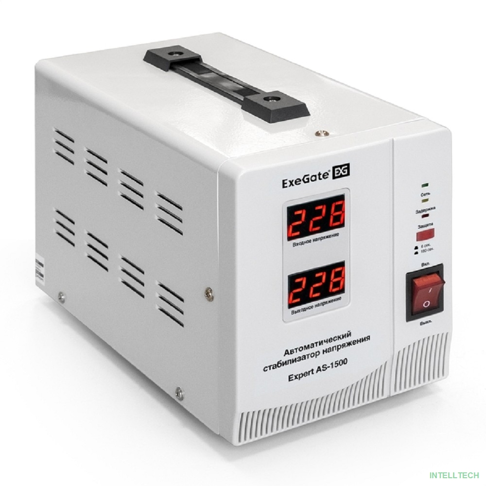 название: Exegate EX291722RUS Стабилизатор напряжения ExeGate Expert AS-1500 (1500ВА, вход 140...260В, двойная цифр. индикация вход/вых. напряжения, выход 220В±8%, КПД 98%, 5 уровней защиты, задержка, метал. ко