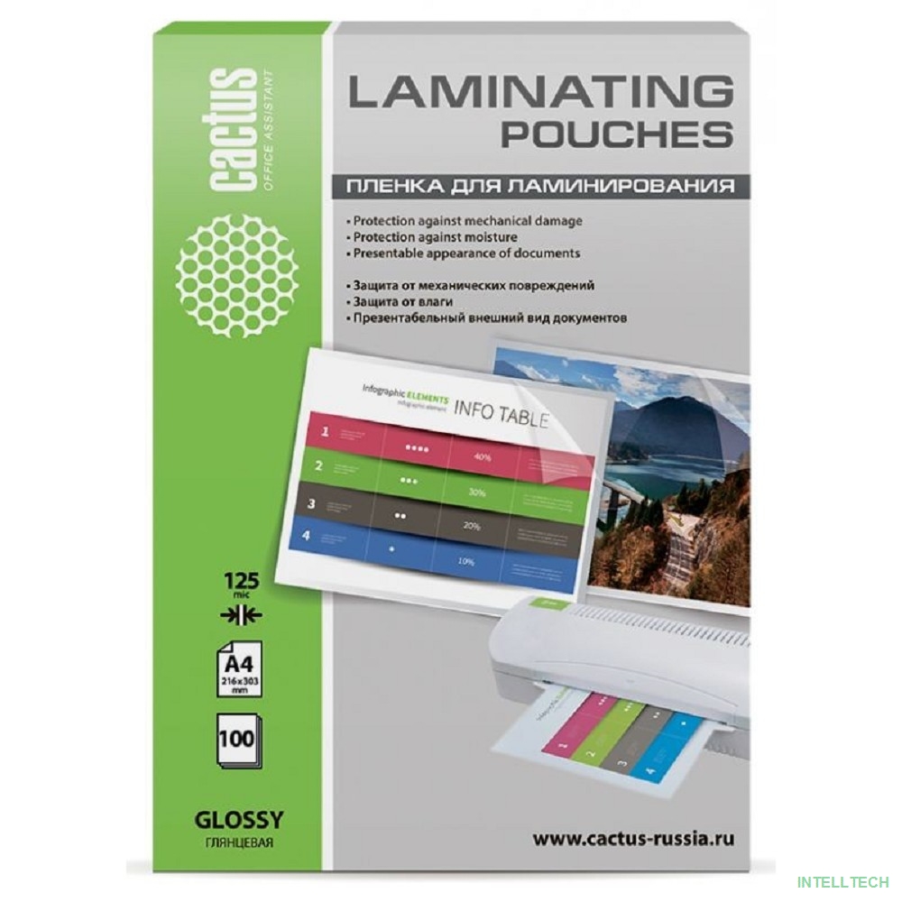 rusName: [CACTUS плёнка для ламинирования] Cactus Пленка для ламинирования 125мкм A4 (100шт) глянцевая 216 x 303мм [CS-LPGA4125100]