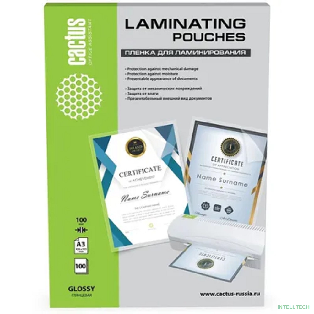 rusName: [CACTUS плёнка для ламинирования] Пленка для ламинирования Cactus CS-LPGA3100100, 100мкм, 426х303 мм, 100шт., глянцевая, A3