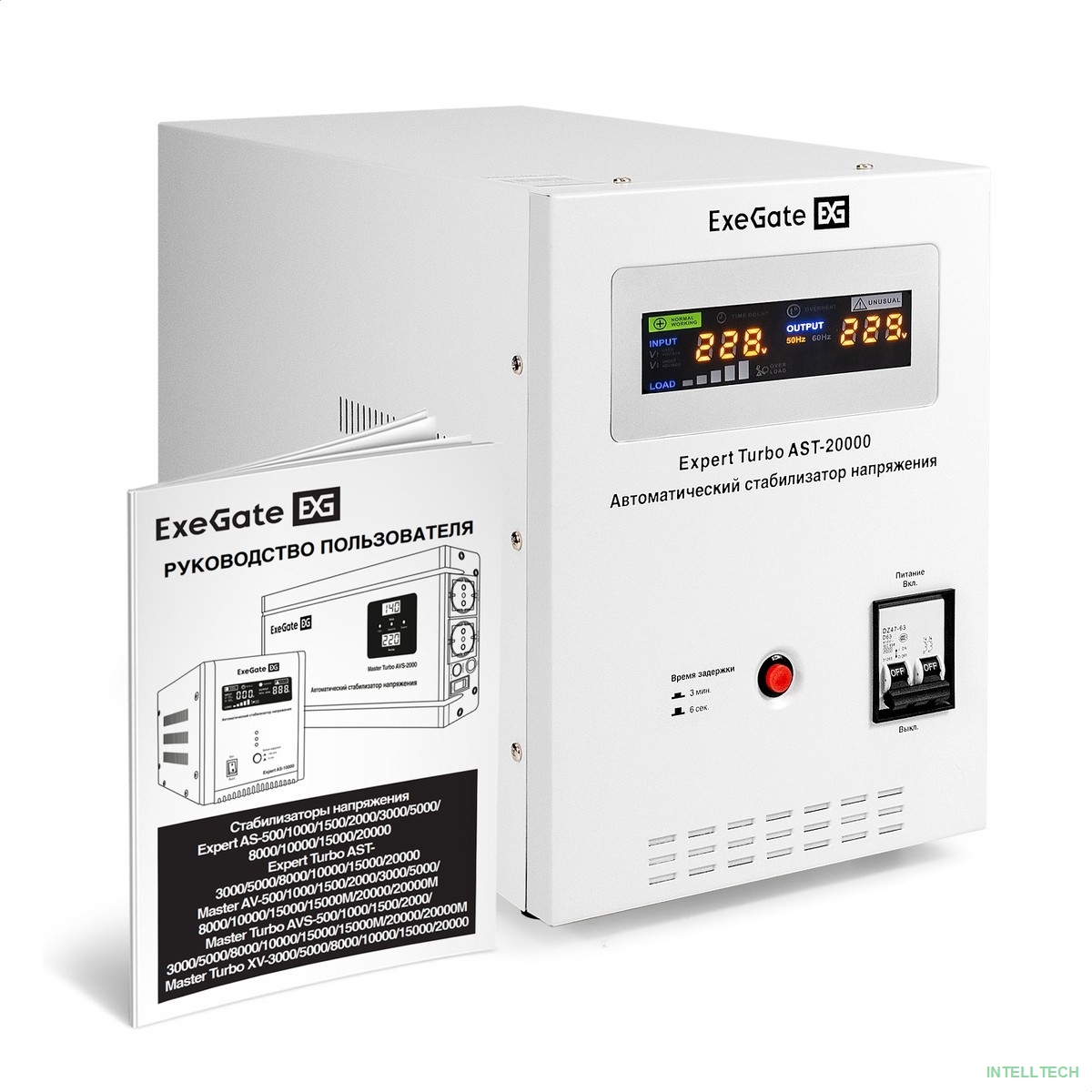 rusName: [ИБП] Exegate EX291763RUS Стабилизатор напряжения ExeGate Expert Turbo AST-20000 (20000ВА, вход 80-260В, цветной дисплей, выход 220В±8%, КПД 98%, 5 уровней защиты, задержка, усиленный метал. корпус, клем.ко