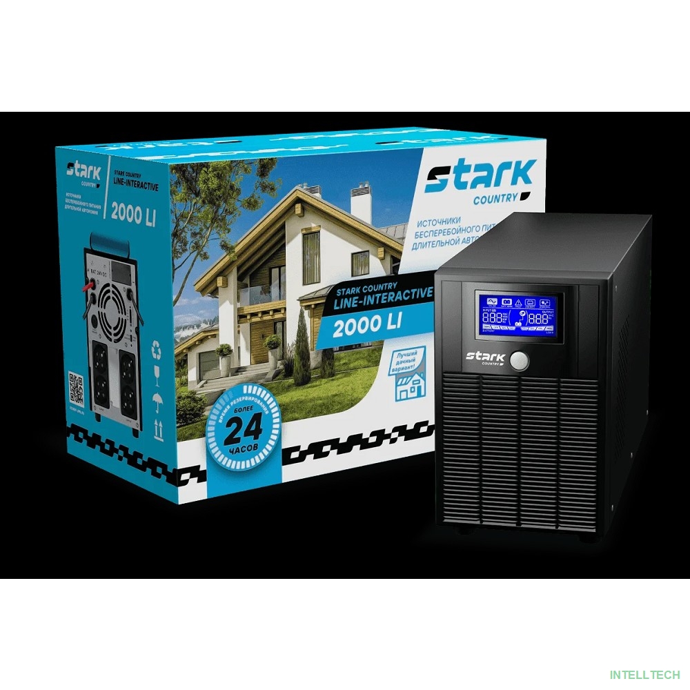 название: ИБП STARK SC 2000 LI {2000ВА/1200Вт, Line-Interactive, на пол, 140-300В, 4хЕВРО, Чистый синус, SNMP, AS400, БЕЗ АКБ - внешние батареи х2 9-400 Ач}