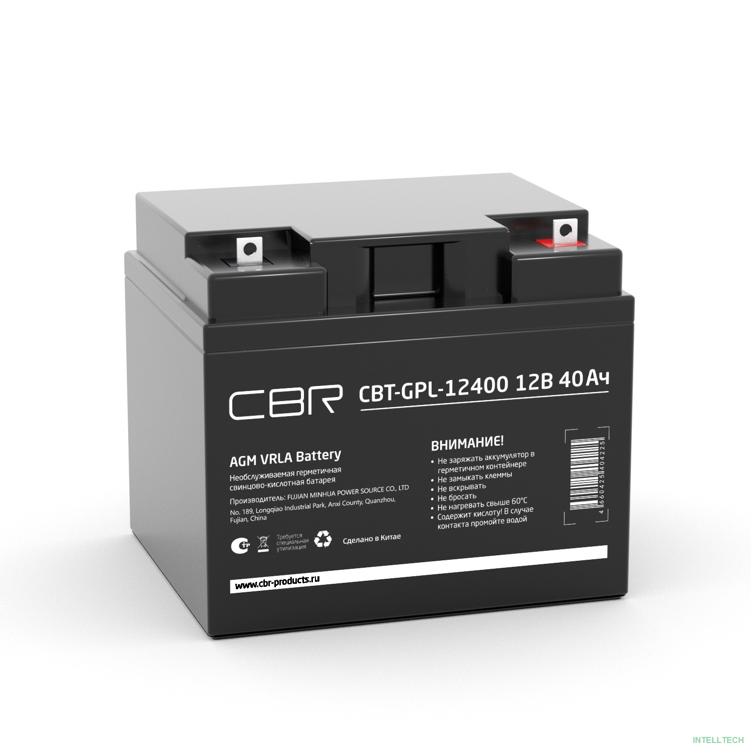 название: CBR Аккумуляторная VRLA батарея CBT-GPL-12400 (12В 40Ач), клеммы L1 (болт М5 с гайкой)