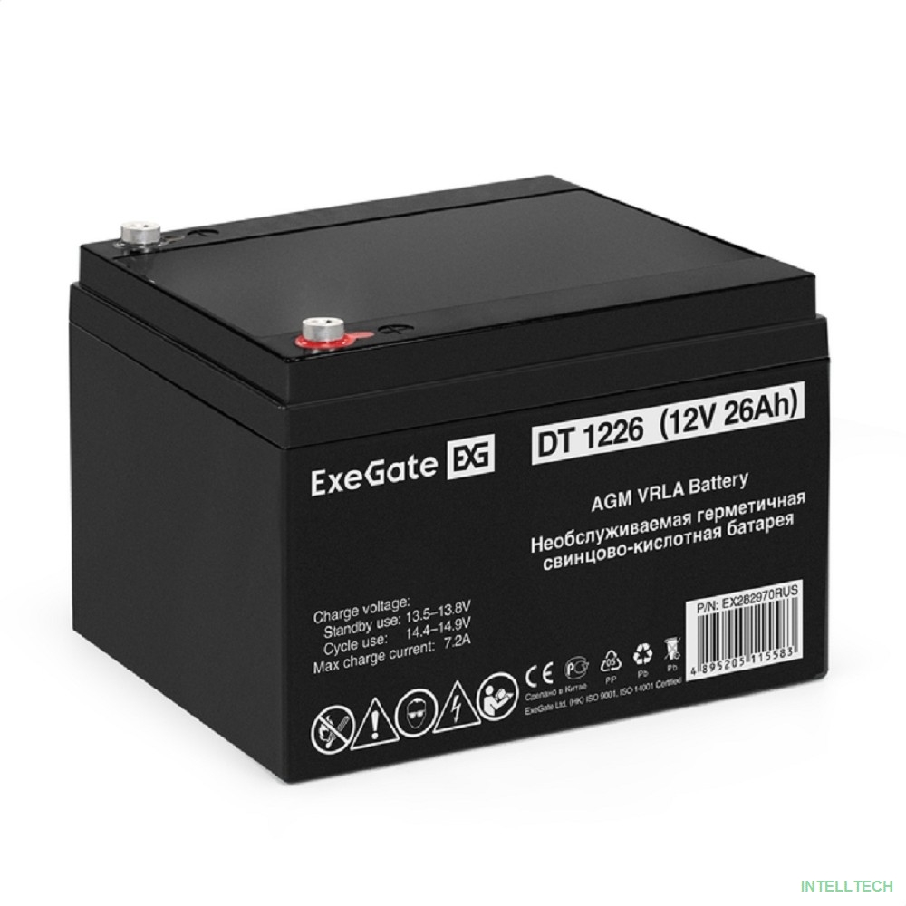 rusName: [батареи] Exegate EX282970RUS Аккумуляторная батарея DT 1226 (12V 26Ah, клеммы F3 (болт М5 с гайкой))