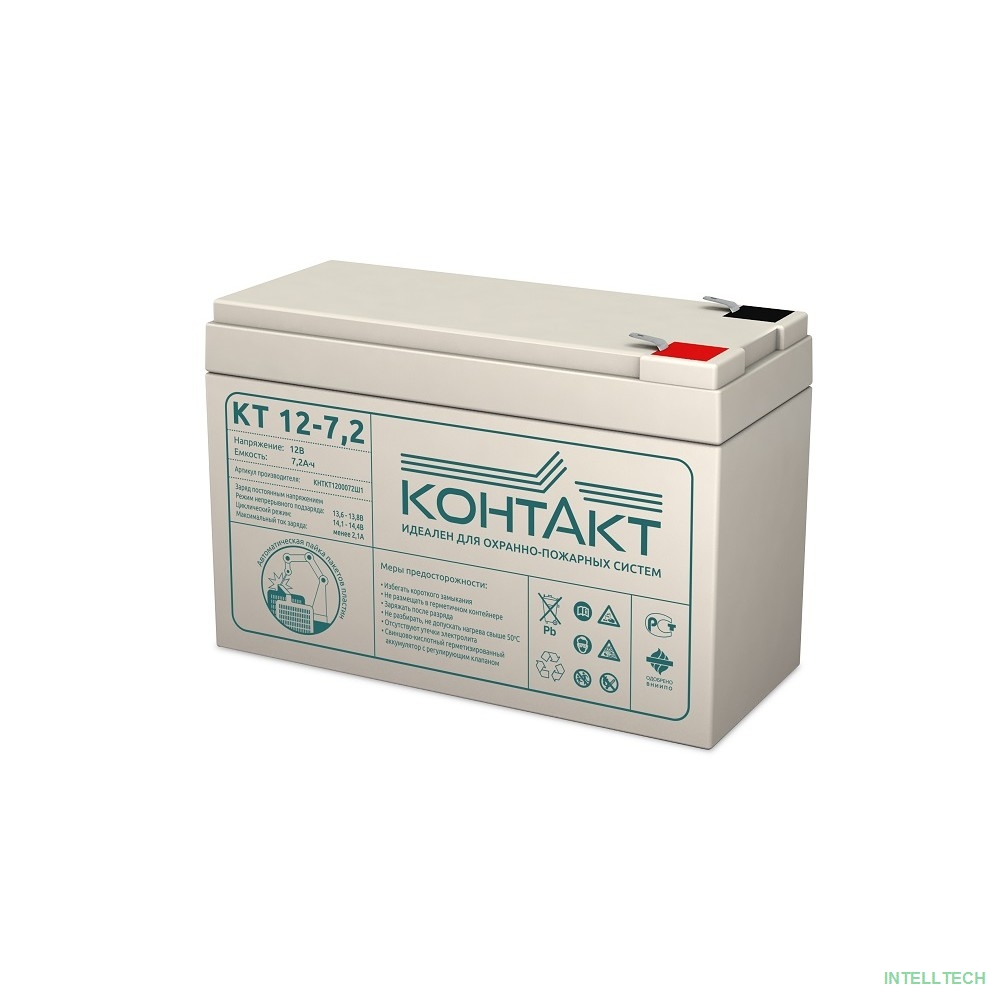 rusName: [Батареи Контакт] Контакт АКБ КТ 12-7,2 12V/7,2Ah {клемма Ш-4,8 (F1), ДхШхВ 151х65х100мм, масса 2,00 кг, срок службы 5-7 лет}