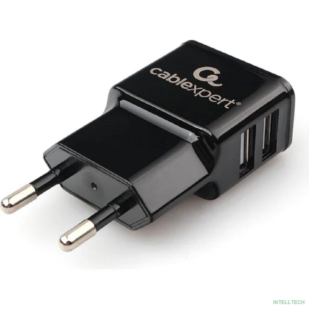 rusName: [Аксессуар] Cablexpert Адаптер питания 100/220V - 5V USB 2 порта, 2.1A, черный (MP3A-PC-12)