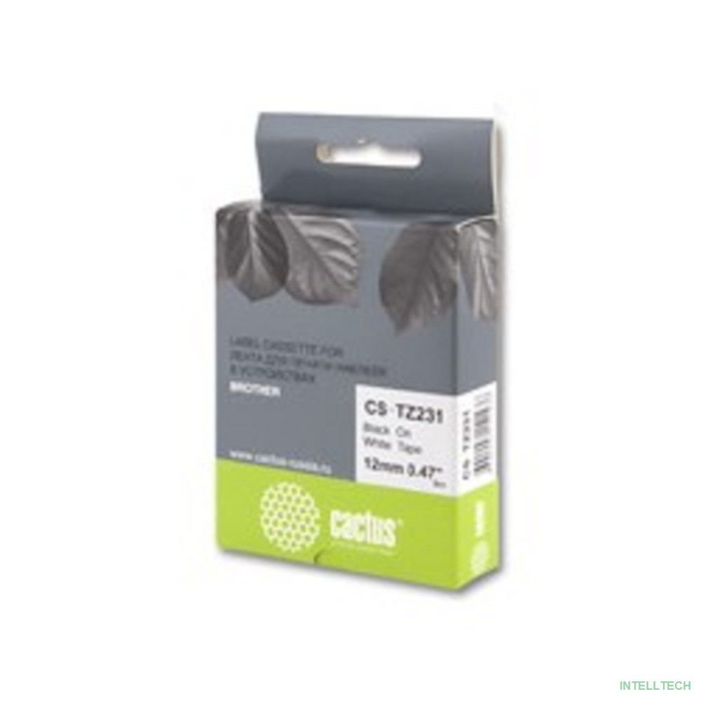 rusName: [расходные материалы] CACTUS TZ-231 Лента CACTUS (CS-TZ231) для печати наклеек в устройствах brother P-touch 1010/1280/1280VP/2700VP, черный на белом, 12мм х 8м