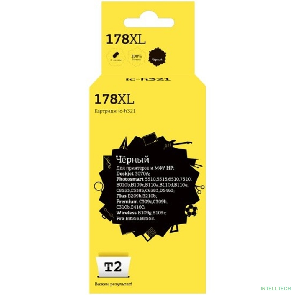 название: T2 CB321/CN684HE Картридж (IC-H321) №178XL для HP Deskjet 3070A/Photosmart 6510/7510/B110/C8583, черный, С ЧИПОМ, 550 стр.