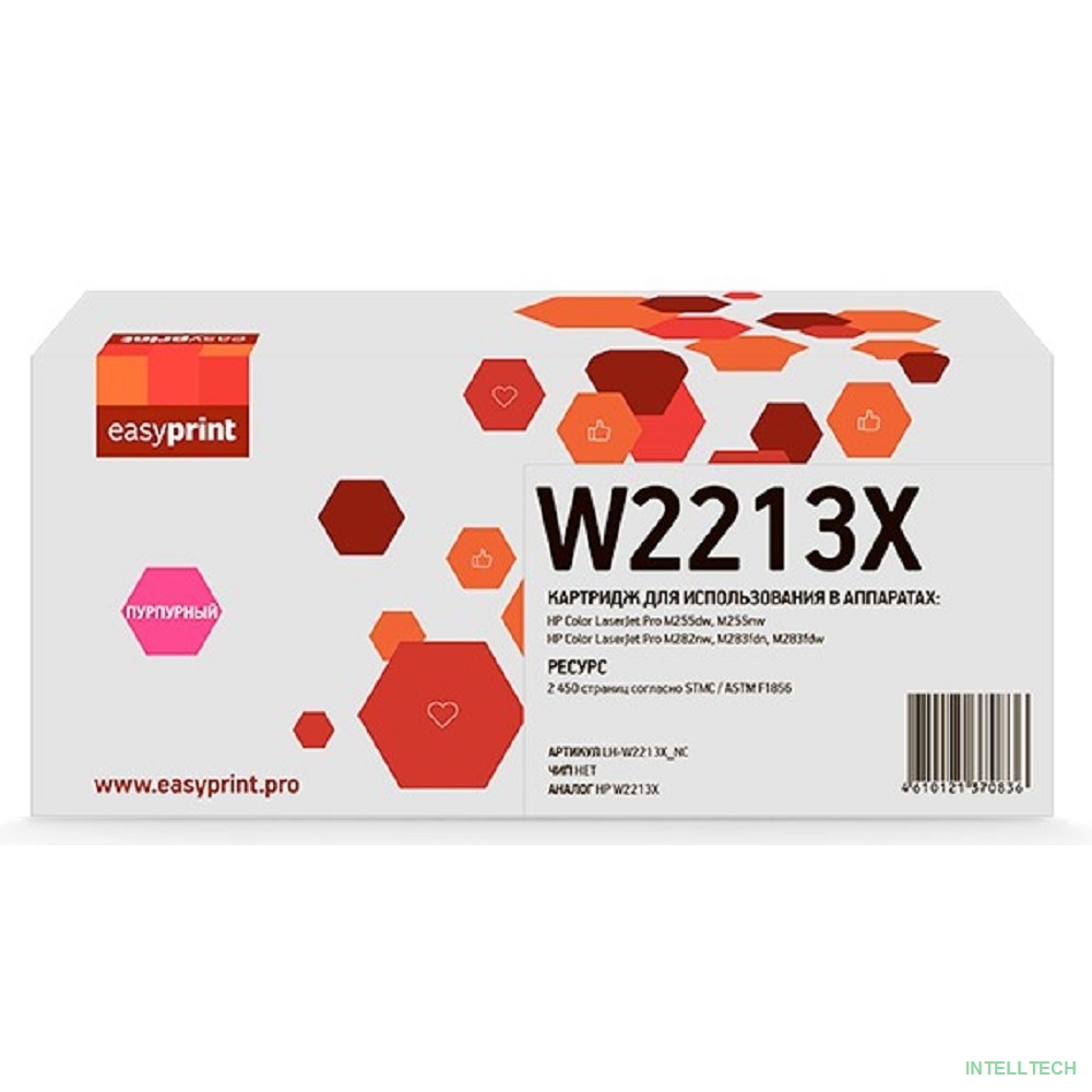 rusName: [Расходные материалы] Easyprint W2213X картридж (LH-W2213X_NC) для HP CLJ Pro M255/M282/M283 (2450 стр.) пурпурный, БЕЗ ЧИПА