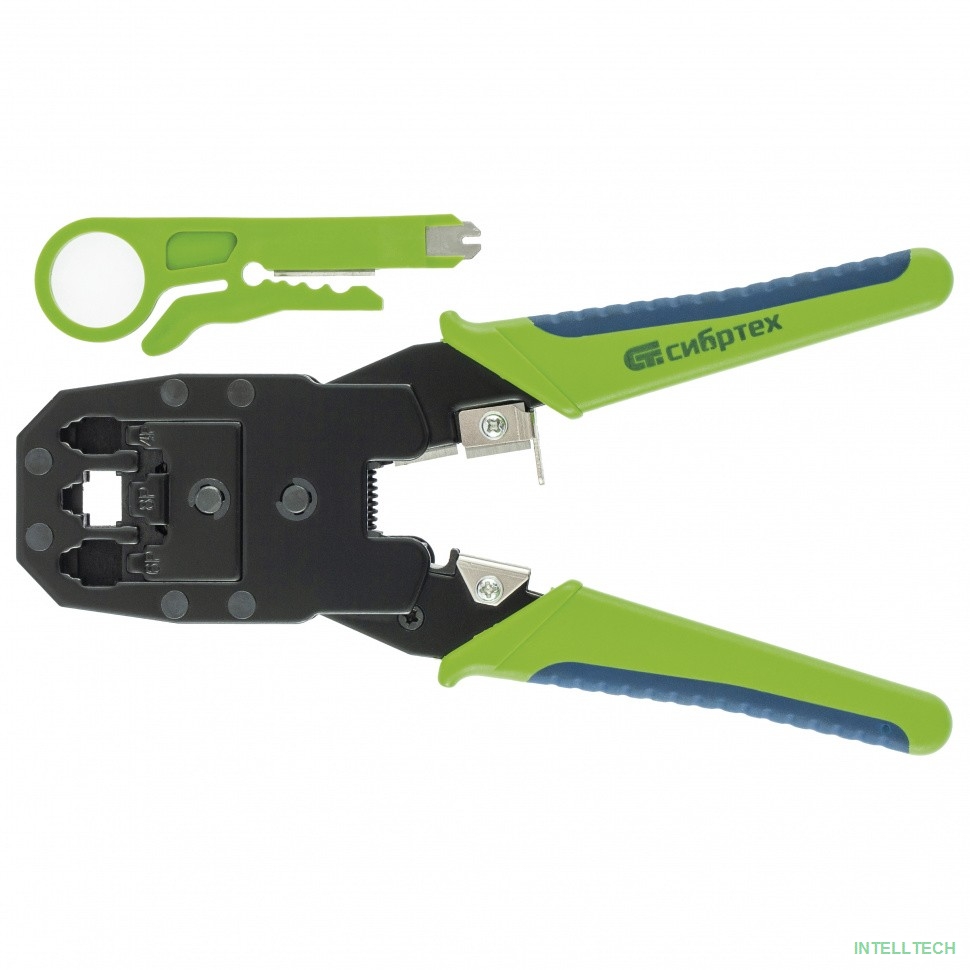 название: СИБРТЕХ Клещи для обжима телефонных и компьютерных клемм 4P, 6P, 8P, функция обрезания проводов [17733]