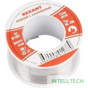 название: REXANT (09-3223) Припой с канифолью 100 гр. d=2.0 мм (Sn60 Pb40 Flux 2.2%)
