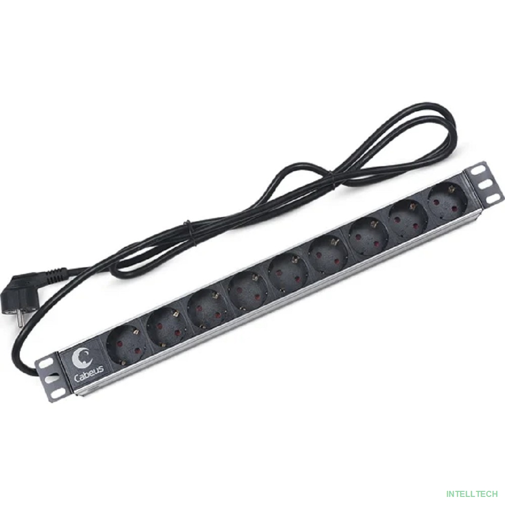 название: Cabeus PDU-9P-2EU Блок евророзеток для 19" шкафов, горизонтальный, 9 розеток, 16 A, без выключателя, шнур 2м, алюминиевый корпус, немецкий стандарт