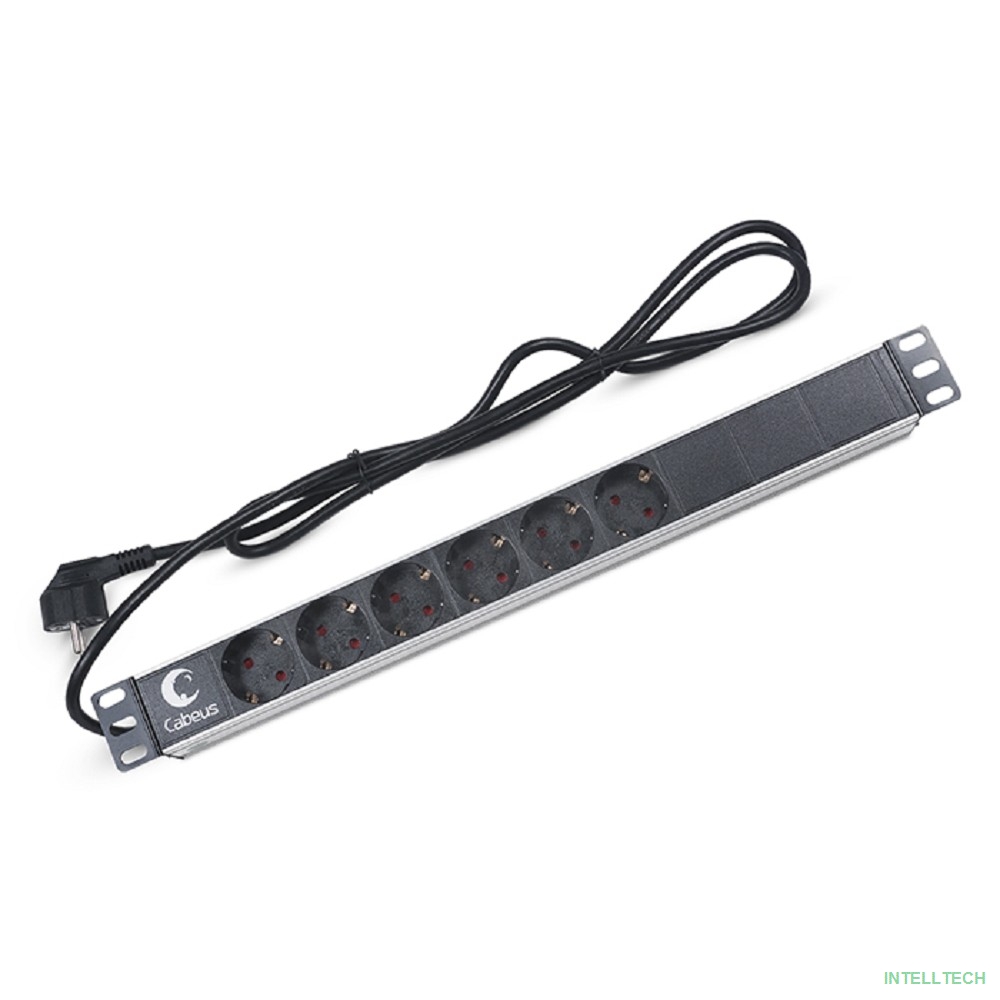 название: Cabeus PDU-6P-2EU Блок евророзеток для 19" шкафов, горизонтальный, 6 розеток, 16 A, без выключателя, шнур 2м, алюминиевый корпус, немецкий стандарт