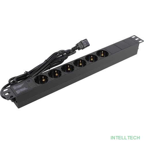 Exegate EX280829RUS Блок розеток ExeGate ServerPro PDU-19H604 Al-6S-C14-2.5, 19",1U,алюм, 6Schuko, кабель с C14 2.5м