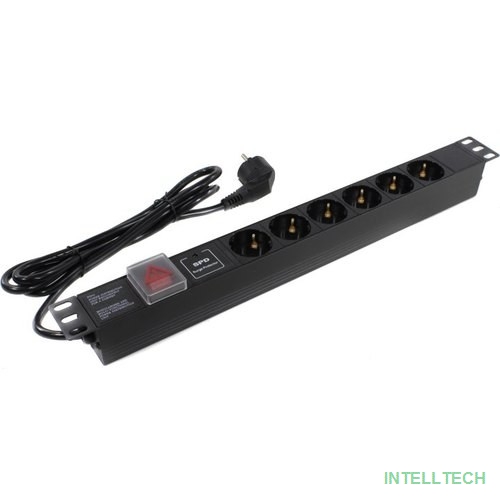 rusName: [аксессуары к монтажным шкафам] Exegate EX280833RUS Блок розеток ExeGate ServerPro PDU-19H608 Al-6S-EU2-SW-SPD1, 19",1U,алюм, 6Schuko, евровилка,2м,SPD1