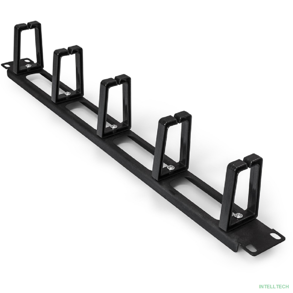 rusName: [аксессуары к монтажным шкафам] Exegate EX292870RUS Exegate EX292870RUS Кабельный органайзер ExeGate CM19-1U-5R (горизонтальный 19" 1U, 4 окна в основании металлического профиля, 5 пластиковых колец, глубина 45mm, цвет черный, RTL)