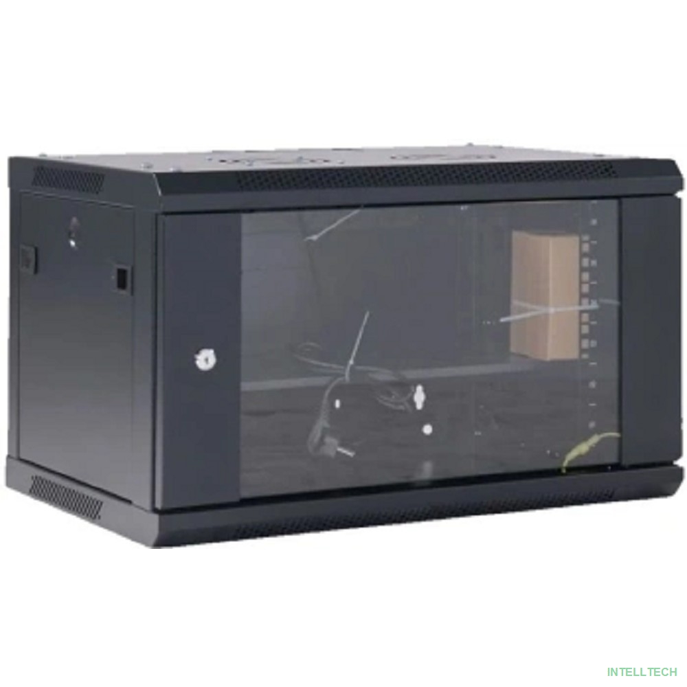 название: Rexant (04-0654-112) Настенный телекоммуникационный шкаф 19" 6U 550?400мм, дверь стекло, с задней стенкой, разборный, черный (RAL 9005)