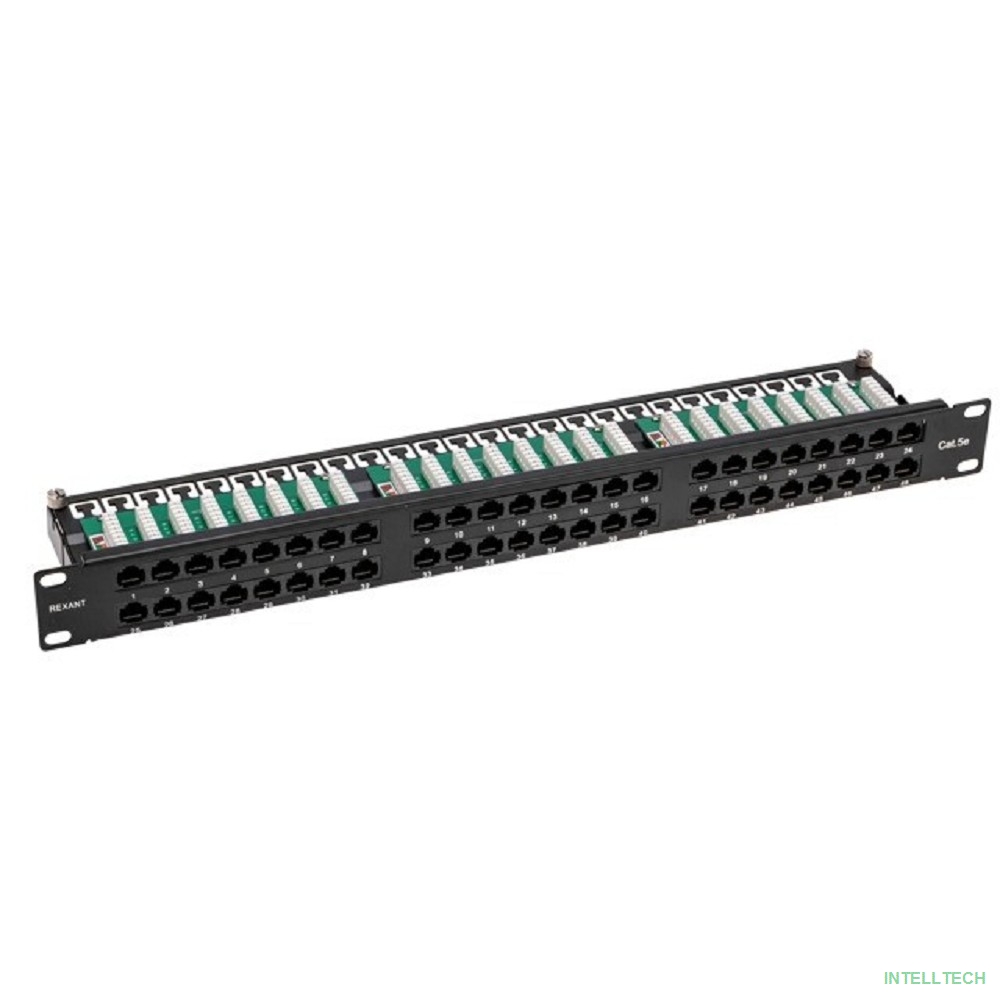 rusName: [Розетки и патч-панели] Rexant (02-0033) Панель коммутационная высокой плотности с кабельными органайзерами 19", 1U, 48 портов, UTP, RJ-45, CAT 5e REXANT PRO