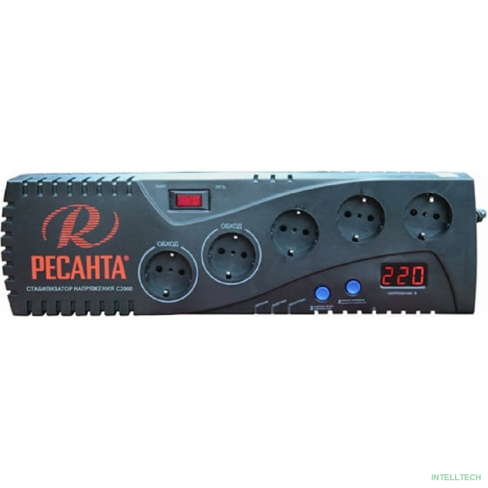 rusName: [Ресанта Стабилизаторы напряжения] Ресанта С-2000 63/6/34 (16694) Стабилизатор {5 розеток -(3/2), 2000 Вт, 220В±8% + защита RJ11, Вес 4,2 кг}