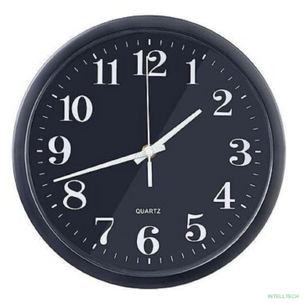 rusName: [Колонки] Perfeo Настенные часы "PF-WC-003", круглые д. 30 см, чёрный корпус / чёрный циферблат