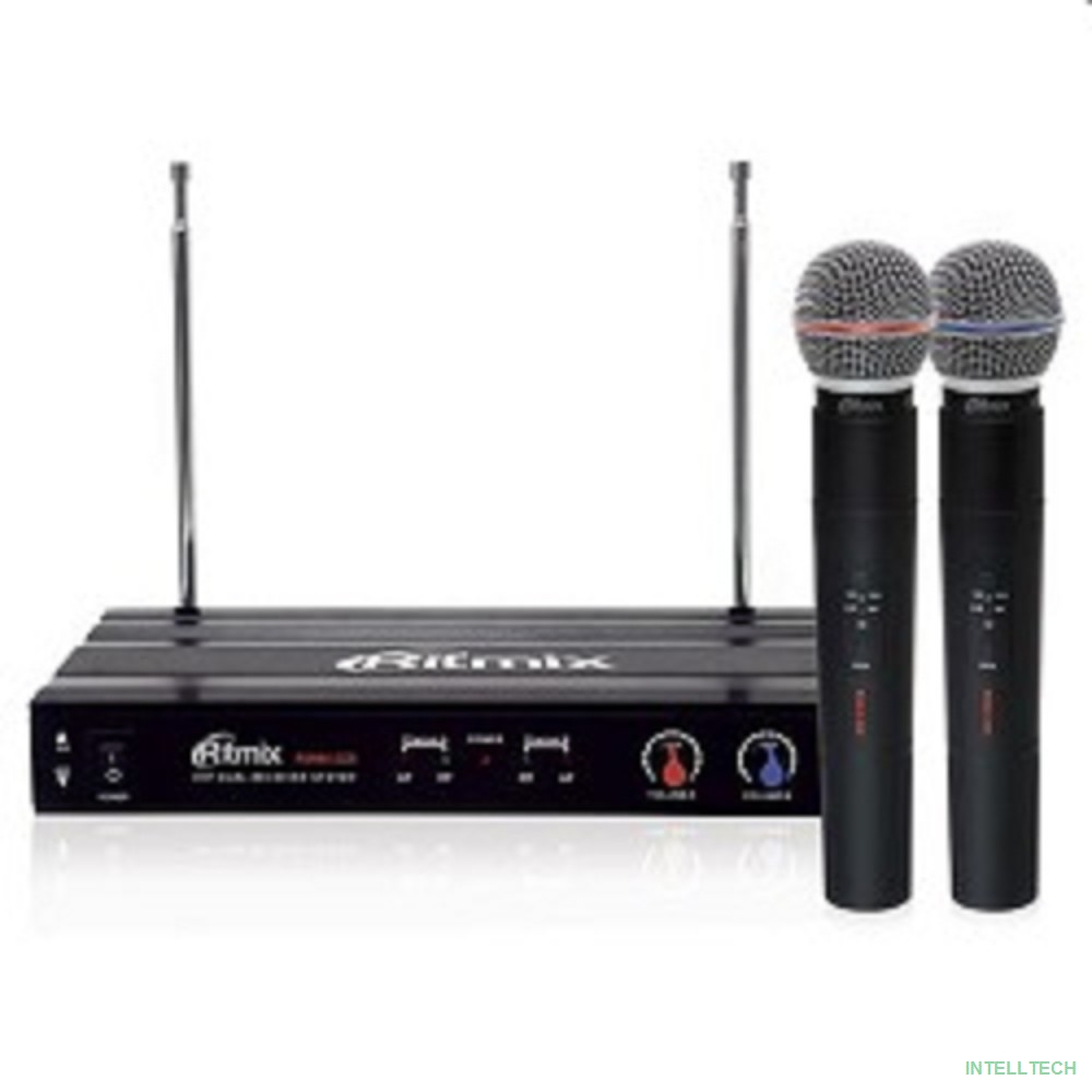 название: RITMIX RWM-221 black {2 микрофона, 87.5 - 92 МГц, 2 канала, ±0,005%, 40-20000 Гц, 600 Ом, –60±3 дБ, 80 дБ, макс девиация: 10 КГц}